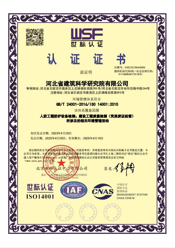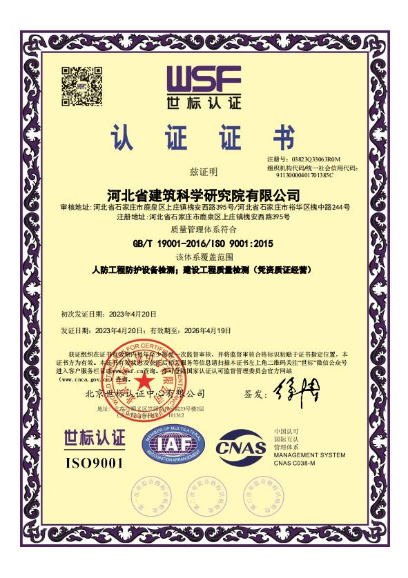 河北省建筑科學(xué)研究院有限公司人防工程檢測機構(gòu)證明