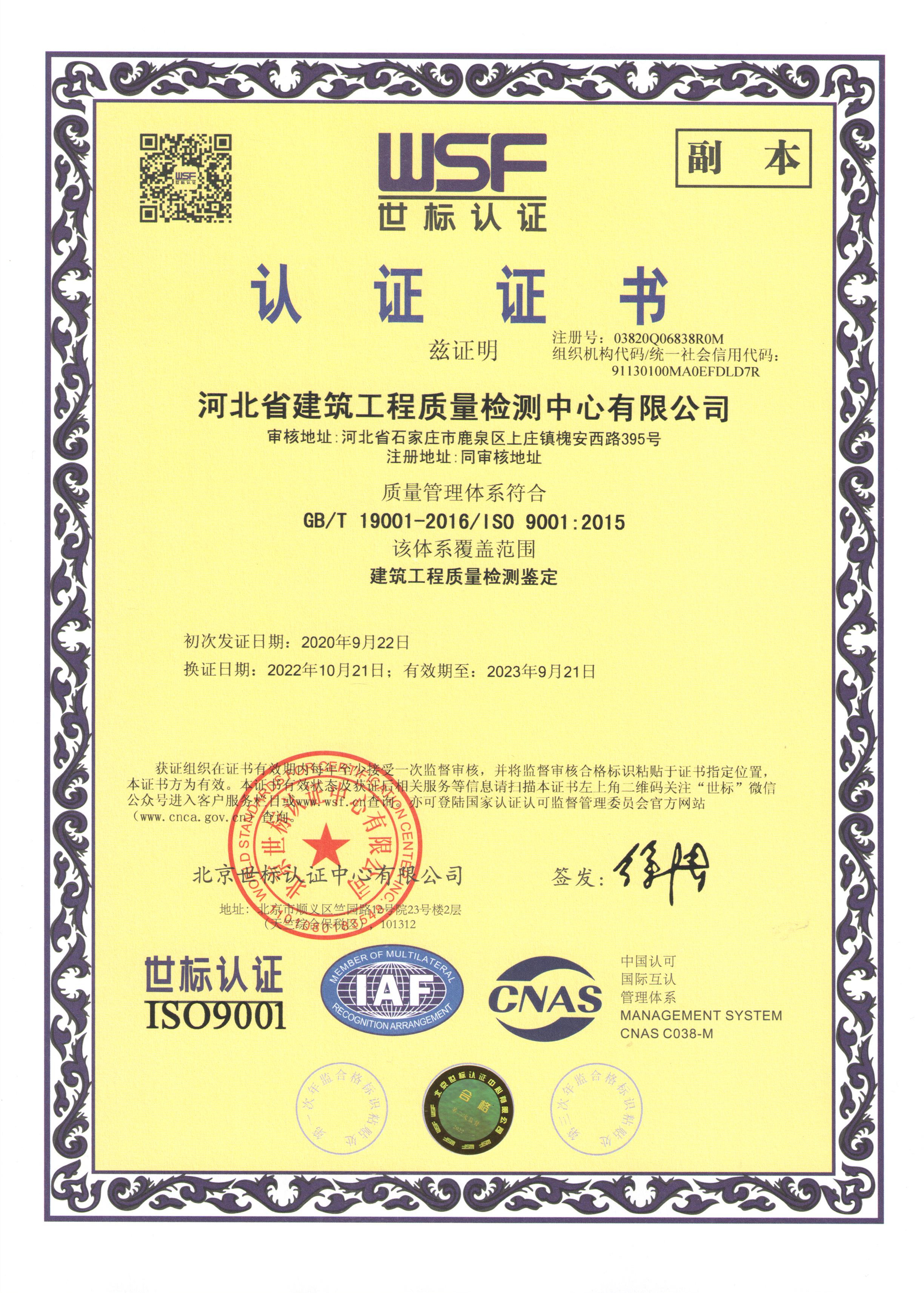河北省建筑工程質(zhì)量檢測中心認證證書3